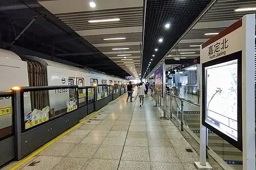 North Jiading (Chinese: 嘉定北; pinyin: Jiādìng Běi) is a station on Line 11 of the Shanghai Metro. Located on the north side of Pingcheng Road near Chengbei Road, it is the current northern terminus of the mainline service of Line 11.