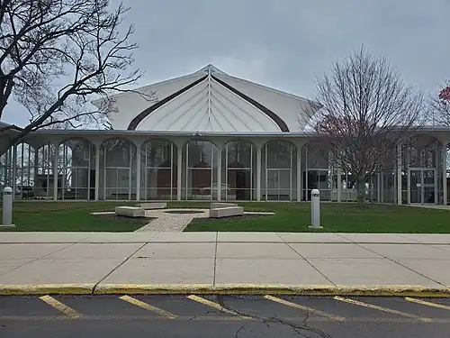 The congregation's 1964 building is located on a 19-acre (7.7 ha) lakefront parcel, formerly the location of a 1911 mansion that was designed by Chicago architect David Adler for his uncle, hat manufacturer Charles A. Stonehill, and was later owned by Syma Cohen Busiel, the co-founder of Lady Esther cosmetics, before it was sold to the congregation in 1961 for $500,000.[3][4]