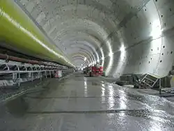 During construction all 1,700 staff and visitors inside the tunnel could be located at any time using an RFID tagging system that transmits a person's location wirelessly.[25] The system was designed to monitor site access and asset location and improve safety and efficiency in a high-profile and potentially hazardous worksite.