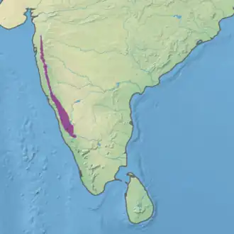 The North Western Ghats montane rain forests is a tropical moist broadleaf forest ecoregion of southwestern Indian peninsula. It covers an area of 30,900 square kilometers (11,900 sq mi), extending down the spine of the Western Ghauts range, from southernmost Gujarat through Damaon, Maharashtra, Goa & Karnataka. The montane rain forests are found above 1000 meters elevation, and are surrounded at lower elevations by the North Western Ghats moist deciduous forests.