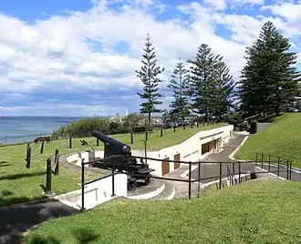 North Beach is a popular surfing and swimming destination with a year-round surf patrol.[4] The North Wollongong beachfront is also the beginning of the Heartcare Foundation section of the Wollongong to Thirroul Bike Track which runs adjacent to the coast to Thirroul to the north. West of North Beach is a small strip of park along the cliff that runs between Cliff Road and the bike track; this is the location of Smiths Hill Fort.