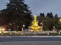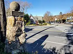 Northbrae is a neighborhood in Berkeley, California built as part of the early 20th century northern expansion of Berkeley. The name broadly refers to the communities north of Berryman Street, south of Solano Avenue, east of Spruce and west of Albany. It's bordered by the two commercial districts on Solano Avenue and Hopkins Street, as well as hilly terrain made up of volcanic rock, rhyolite, and 136 stairways carved into the landscape. The Northbrae development area is visibly distinct for its pink sidewalks and many stone pillars topped with concrete globes denoting street names. The central hub of Northbrae is the Fountain at the Circle, a water fountain designed by the head architect of the University of California surrounded by terra cotta roundabout and stairwell. Northbrae made it into the American Planning Association's list of Great Places in America in 2011.[1][2]
