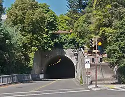 The Northbrae Tunnel, also referred to as the Solano Avenue Tunnel, was built as a commuter electric railroad tunnel in the northern part of Berkeley, California, and was later converted to street use.
