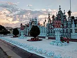 An unusual house known as the "Sugar House" is located in the Northeast.[19] The home is owned by Rufino Loya who started decorating his home with statues and mosaics starting in 1973.[19] The style is similar to art from Zacatecas.[19]