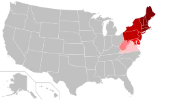Northern American English or Northern U.S. English (also, Northern AmE) is a class of historically related American English dialects, spoken by predominantly white Americans,[1] in much of the Great Lakes region and some of the Northeast region within the United States. The North as a superdialect region is best documented by the 2006 Atlas of North American English (ANAE) in the greater metropolitan areas of Connecticut, Western Massachusetts, Western and Central New York, Northwestern New Jersey, Northeastern Pennsylvania, Northern Ohio, Northern Indiana, Northern Illinois, Northeastern Nebraska, and Eastern South Dakota, plus among certain demographics or areas within Michigan, Wisconsin, Minnesota, Vermont, and New York's Hudson Valley.[2] The ANAE describes that the North, at its core, consists of the Inland Northern dialect (in the eastern Great Lakes region) and Southwestern New England dialect.[3]