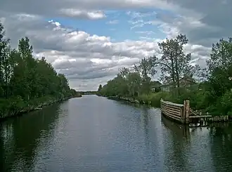 In the beginning of the 19th century, the North Ekaterininsky Canal was considered to be more important, and the project was shelved. However, the North Ekaterininsky Canal proved inefficient for a number of reasons and was finally closed in 1838. On the other side, the Napoleonic wars blocked the access of Russia to Europe via the Baltic Sea, and for some time Arkhangelsk again became the most important foreign trade harbor, with shipbuilding as an important local industry. In 1823 a route for the canal was surveyed for the second time, and construction started in 1824.[1] The canal opened in 1828 under the name Alexander of Württemberg Canal, after the Russian minister of transportation in 1822–1833, Duke Alexander Friedrich of Württemberg.[2]