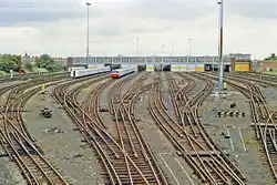 The new station opened on 18 December 1932 [8]: 72 [9] with the current name. It has two island platforms serving four sets of tracks (two eastbound and two westbound) and is connected directly to the Northfields depot immediately to the west of the station and south of the tracks. Trains may terminate at Northfields station and then run on to the west to enter the depot. To avoid operational conflicts between the eastbound depot exit track and the westbound running track to Boston Manor, the westbound running track passes under the depot track in a cutting. Trains normally enter and exit service at Northfields although there is also a single track connection from the depot to the westbound running track west of Boston Manor.