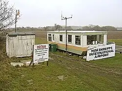 Northrepps Aerodrome opened in October 2007 following the closure of Northrepps International Airport, which was located just 1 km (0.62 mi) north-east of the current aerodrome. Northrepps International Airport had just one runway (18/36) with a pronounced downslope on the southerly runway, which meant that aircraft generally took off on runway 18 and landed on runway 36 regardless of wind direction. That unusual arrangement had been the cause of some accidents, with aircraft occasionally overshooting the runway.[2][3][4]