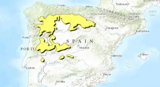A few mountaintop enclaves lie further south, in the Serra de São Mamede in Portugal, and the Sierra de las Villuercas and Sierra de San Pablo in Spain.