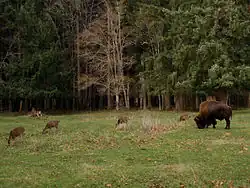Northwest Trek Wildlife Park is a 723-acre (293 ha) wildlife park located near the town of Eatonville, Washington, United States. The park is home to black and grizzly bears, grey wolves, bald eagles, a cougar, wolverines, bobcats and more. Its primary feature is a tram tour which takes visitors through a 435-acre (176 ha) free-roam area. The park also allows guests to drive their own vehicles past bison, mountain goats, Roosevelt elk, deer, caribou, swans and more on a Wild Drive tour. Guests can also take a premier Keeper Adventure Tour and go off-road in a Jeep with a keeper and up close to wildlife. The Zip Wild zipline is also open seasonally.