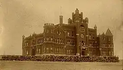 In 1897, a normal school, or school for teachers, was established in Alva by an act of the Oklahoma Territorial Legislature. It was the second normal school in Oklahoma, charged with preparing teachers to serve the many one-room schoolhouses that covered the prairie. It was called the "Northwestern Territorial Normal School". The new school's faculty consisted of the school's first president, James E. Ament, and two teachers. Classes were held in the Congregational Church until construction of the first building, the "Castle on the Hill", was complete on September 20, 1897.