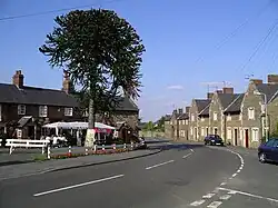 The village hall is situated near the Parish Church of All Saints. The village has one public house, The White Horse. To the east of the village is a shopping complex in a converted set of farm buildings trading as 'The Heart of the Shires Shopping Village'.