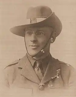 When Dooley graduated in May 1915,[6] he had been intending on studying theology at the Trinity College Theological School, possibly with a view to ordination. However, having earlier been rejected for war service due to his poor eyesight (he wore spectacles his whole life), on 7 July 1915 he was re-examined and passed as fit for service. His eyesight is perhaps why he was not originally given duties on the front line.[7] He enlisted as a private in the Australian Army Medical Corps, and was assigned to the No. 2 Australian Casualty Clearing Station, which dealt with the wounded from the Gallipoli Campaign.
