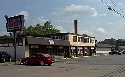 A few commercial structures, located on the east side of Venoy Road just south of Dorsey Road, were part of the original Norwayne development. The two-story building at 2345 Venoy Road originally housed a grocery store, dry cleaner, barber shop, beauty parlor, and taxicab office on the first floor and a physician's and dentist's offices on the second. An addition to the building housed a drug store. A second commercial building housed a five-and-dime store[2]