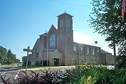 On June 22, 1851, Rev. C. L. Clausen arrived at the settlement which would eventually become the city of Westby, Wisconsin and held services in a local barn.[2] Two years later on July 12, 1853, Coon Prairie Lutheran Church was established by Pastor Nels Brandt and the first pastor of the congregation was Rev. H. A. Stub in 1855.[2] The current building used by the congregation was built in 1909 in the city of Westby at a cost of $21,000, named Westby Coon-Prairie; with another building built just outside town, named Country Coon-Prairie, on the original site of the congregation's first church.[3] Both buildings are used by the congregation for worship services with the Country Coon-Prairie building used only during the summertime. The Country Coon-Prairie site was added to the National Register of Historic Places in 1986.[4]