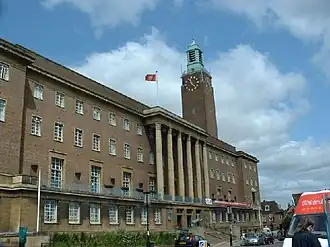HMSO, once the official publishing and stationery arm of the British government and one of the largest print buyers, printers and suppliers of office equipment in the UK, moved most of its operations from London to Norwich in the 1970s. It occupied the purpose-built 1968 Sovereign House building, near Anglia Square, which in 2017 stood empty and due for demolition if a long-postponed redevelopment of Anglia Square went ahead.[58]