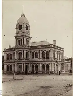 The current building was designed by Alfred Wells, who then worked as an architectural draughtsman for the firm Bayer and Withall,[3] after his design had won a competition held in 1881. The classical style building opened in 1883[4] and included civic offices and a banqueting hall to service the growing town.[2]