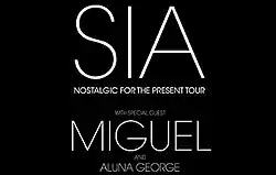 The Nostalgic for the Present Tour was the fifth concert tour by Australian recording artist Sia.[1] The 23-date North American leg of the tour, which featured opening acts Miguel and AlunaGeorge, began at Seattle, Washington's KeyArena on 29 September 2016 and concluded on 6 November 2016 at the Frank Erwin Center in Austin, Texas.[2][3] Maddie Ziegler toured with Sia, together with several other onstage dancers,[4][5] executing Ryan Heffington's choreography on the stage, while Sia sang at the rear of the stage with her face covered by her familiar wig.[6][7] The tour received positive reviews from critics.[8]