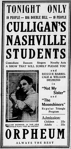 Not My Sister is a 1916 silent film drama directed by Charles Giblyn and starring Bessie Barriscale and William Desmond. It was produced by Thomas H. Ince for Kay-Bee Pictures and distributed by Triangle Film Corporation in Culver City, California.[1][2][3]