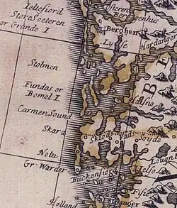 Notow (or Nothaw, Notau, probably a Germanization of Nautøy, which again may have evolved into the present Nottå) was a trading port located at the northeast of Karmøy, or more specifically located at the king's port area in Avaldsnes.[1] According to the 16th century book Die Nordische Saw, the first Hanseatic Kontor established in Norway (before Bryggen in Bergen) was based in Notow.[2] However, despite a Hanseatic presence at Notow, the existence of a Hanseatic "Kontor" or permanent trading post there is not supported by contemporary sources, and not accepted among modern historians.