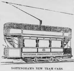 Nottingham Corporation Tramways was formed when Nottingham Corporation took over the Nottingham and District Tramways Company Limited, which had operated a horse and steam tram service from 1877.[1]
