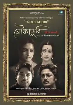 Noukadubi ("Boat wreck") is a Bengali film directed by Rituparno Ghosh, released in January 2011.[1] The movie is a period film set in the 1920s, based on the 1906 novel by Rabindranath Tagore, although the credits claim that the film is 'inspired' by the Tagore novel because Rituparno Ghosh has taken the skeleton of the original story and woven it with his own inputs – cerebral and emotional.