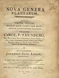 Nova genera plantarum, commonly abbreviated as Nov. Gen. Pl., was a register of plants published from Uppsala by Thunberg from 1781 onwards, listing new genera. Contributing editors were