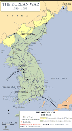 - ^ Chicago Daily Tribune, November 8, 1950, p2-1; Bruce Cumings, North Korea: Another Country (The New Press, 2013)