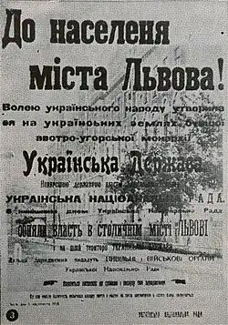 - ^ "1918 - у Львові розпочався Листопадовий чин" [1918 - November Uprising begins in Lviv]. Ukrainian Institute of National Memory (in Ukrainian). Retrieved 15 September 2023.