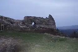 Novo Brdo Fortress (Albanian: Kalaja e Novobërdës, Kalaja e Artanës; Serbian: Тврђава Ново Брдо, Tvrđava Novo Brdo) is a medieval Serbian fortress in Kosovo. Its ruins are located near the town of Novo Brdo, about 40 kilometres (25 mi) east of Pristina. The fortress was built in the late 13th century by king Stephen Uroš II Milutin of Serbia to protect gold, silver, iron and lead mines which were abundant throughout the area. Novo Brdo was famous for its silver. Together with the castles of Prizren, 12 kilometres (7.5 mi) to the southwest, and Prilepac, 13 kilometres (8.1 mi) to the southeast, which guard access roads to the fortress, Novo Brdo helped form a defensive complex overlooking the lucrative mining operations. Novo Brdo was at its height during the Serbian Despotate (1402–1459), when it was the most important mining area and second most important town in Serbia. A significant number of Saxon miners, Albanian Catholics[1] and a large Ragusan merchant colony lived within the town, which was ruled by a vojvoda, but also a governor (kefalija), because it was the seat of an administrative unit of the Despotate.[2]