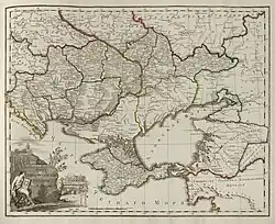 Novorossiya Governorate[a] was an administrative-territorial unit (guberniya) of the Russian Empire, which existed in 1764–1783 and again in 1796–1802. It was created and governed according to the "Plan for the Colonization of New Russia Governorate" issued by the Russian Senate.[1] It became the first region in Russia where Catherine the Great allowed foreign Jews to settle.[1]