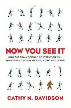 In Now You See It: How the Brain Science of Attention Will Transform the Way We Live, Work, and Learn Cathy Davidson examines the phenomenon of attention blindness: humans perceive only a fraction of everything going on around us, particularly when we're focusing intently on one specific task, and that this attention blindness does not properly prepare us for the multi-task oriented digital age. According to Davidson, attention blindness is a basic neurological feature of the human brain. In the introduction of Now You See It, Davidson describes attending a lecture on attention blindness which addressed the tendency of the human brain to concentrate intensely on one task at the expense of missing almost everything else. To demonstrate this tendency, the lecturer showed a video of six people passing basketballs back and forth, and instructed viewers to count the number of tosses only between those wearing white shirts. Many people correctly counted fifteen tosses, yet nearly everyone failed to see someone in a full gorilla suit stride in among those tossing basketballs, then walk away. Davidson, who is dyslexic, didn’t even try to keep count, but instead decided to relax as she watched the tape, and thus, she noticed the gorilla.