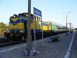 After 1989, the economic system change led to a significant reduction in coal transport, making Nowa Wieś Wielka–Gdynia Port railway no longer necessary for handling excess traffic. On 30 August 1990, the last scheduled fast train on the Gdynia–Wrocław route passed through Kościerzyna.[40] From 1991, the line was used exclusively for limited freight transport to Gdynia and on the Chojnice–Bydgoszcz route. Additionally, trains carrying oversized cargo appeared occasionally. Local passenger traffic remained largely unchanged.[39]