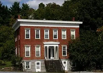 Noxon Bank Building is a historic bank building located at Crescent in Saratoga County, New York. It was built in 1842 and is a three-story, square, hipped roof structure of brick and stone in the Greek Revival style. There is a two-story, hipped roofed brick wing. The entrance features cut limestone Tuscan order columns and pilasters.[2]