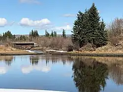 ![]() The outlet of Noyes Slough into the Chena River as viewed from the Chena River State Recreation Site. | |