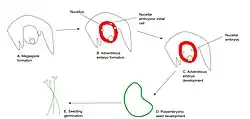 - ^ a b c Koltunow, A. M. (1993-10-01). "Apomixis: Embryo Sacs and Embryos Formed without Meiosis or Fertilization in Ovules". The Plant Cell. 5 (10): 1425–1437. doi:10.1105/tpc.5.10.1425. ISSN 1040-4651. PMC 160373. PMID 12271038.