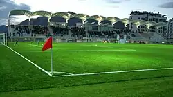 In 2011, the Elda City Council began constructions to build a new stadium 300 meters away from Estadio Municipal Pepico Amat, attempting to turn the grounds of the old stadium into a commercial center.[2] The cost of the new stadium reached 4,5 million, and took the name of its replacement, being called "Nuevo Pepico Amat".[3] Home tenants CD Eldense played their last match in the "old" Pepico Amat on 29 August 2012, a 0–0 draw against Orihuela CF.[4]