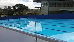 The swimming pool at the college, opened in 2015, is 25 m (82 ft) in length, 2 m (6 ft 7 in) in depth, and has eight lanes.[19][20][21]
