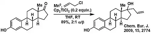 - ^ Rosales, Antonio; Oller-López, Juan L.; Justicia, José; Gansäuer, Andreas; Oltra, J. Enrique; Cuerva, Juan M. (2004). "Unprecedented Barbier-type reactions catalysed by titanocene(III)". Chemical Communications. 2004 (22): 2628–2629. doi:10.1039/B411173G. PMID 15543313.
