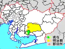 The towns of Iwazu and Fukuoka, and the villages of Motojuku, Yamanaka, Fujikawa, Ryudani and Tokiwa were merged into the city of Okazaki on February 1, 1955; and on September 30, 1956, the villages of Toyotomi, Miyazaki, Katano, and parts of Shimoyama were merged to form the town of Nukata.