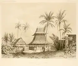 Nuku had nine half-brothers and half-sisters, whose loyalty to his cause shifted. One of them, Prince Hassan, schemed to topple Nuku as Sultan but was murdered under obscure circumstances in 1800. Another, Prince Zainal Abidin, held a vacillating position by was finally appointed to succeed his brother.[23] A purported brother known by the title Jou Mangofa made himself king in the Aru Islands in 1787 but was killed in about 1790.[24] With his wife Geboca (or Habiba Sinobe), Nuku sired two sons and a daughter:
