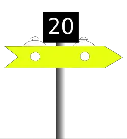Finally, at a distance in advance of the commencement of the restriction that is specified in the Rule Book, a WARNING BOARD is erected at the lineside.