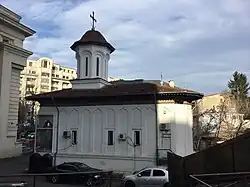 The church underwent repairs in 1896: the columns separating narthex from nave were removed, and the original frescoes were painted over. It was consolidated after the 1940 earthquake. Through the personal care of Patriarch Justinian Marina, the ensemble was restored between 1955 and 1958. The surrounding buildings, partly used by the Biblical Institute, were redone in Neo-Brâncovenesc style, replicating elements from Comana and Horezu Monasteries, as well as from the portico of the church itself. Although modest in size, the ensemble of church, kitchen and other buildings formed a harmonious whole in terms of proportion and decor. The regime of Nicolae Ceaușescu ordered their demolition so as to make way for the Republic's House. The decree met with vehement opposition from the parish priest in 1980, but demolition proceeded in 1982. Only the church remained, the 745-ton structure being moved 245 meters eastward over a period of 72 hours. In its new location, it was isolated and soon surrounded by massive government buildings. After the move, the church operated for one more month, when the regime ordered its closure. Some repairs were carried out in secret. In 1995, several years after the Romanian Revolution, the painting was restored and further repairs carried out. Services resumed the following year.[1]