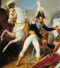 Similarly to Roustam Raza, Otello was one of these Mamelukes offered as a gift to French generals. Joachim Murat would eventually keep Otello as his personal servant.[5] Otello would serve as Murat's servant during the campaign in Egypt, eventually becoming his personal aide, specifically tending to his horse in the rough Egyptian weather.[4]
