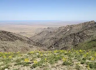 The Nuratau Mountains (Uzbek: Nurota tog'lari, Russian: Нурата́у or Нурати́нский хребе́т) is a mountain range located in Uzbekistan and constitutes one of the western buttresses of the Gissar Range. It borders Aydar Lake to the north, the town of Nurata to the west, the Kyzylkum Desert to the south, and the Sanzar river to the east. Stretching over 170 km in east–west direction it culminates in the 2169 m Mount Zargar.[1]