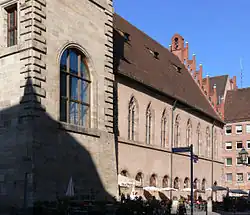 Nuremberg City Hall (German: Nürnberger Rathaus) is located in the old town of Nuremberg, Germany, just east of the choir of the Sebalduskirche. It is part of the Historic Mile of Nuremberg as one of the city's sights. The imposing Renaissance building was designed by architect Jakob Wolff the Younger (1571–1620). It was severely damaged during World War II and was largely rebuilt in the 1950s. In the process, the structure was shortened by two window axes on the north side. On the south side is a core Gothic hall designed by Albrecht Dürer. The Lochgefängnisse, located in the basement, are considered a tourist attraction, as is the Beautiful Fountain, located directly in front of the New City Hall, designed by Kurt Schneckendorf and built from 1954 to 1956. This building replaced the row of houses between the Old Town Hall and the Hauptmarkt, which had been destroyed during the war.