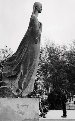 After her death she was honored by the authorities of the USSR as a courageous Soviet role model and martyr,[8] similar to that of Tursunoy Saidazimova. A statue of Nurkhon[9] was built and placed in Margilan in front of the House of Culture. Made by sculptor Valentin Klevantsov in 1967,[10][11] her statue was taken down in 1993 shortly after the disestablishment of the Uzbek Soviet Socialist Republic in 1991;[12][13] A monument to a young woman representing the struggle for feminine emancipation was considered immoral in post-Soviet Uzbekistan.[14] In the city of Ferghana there is a cinema that still bears her name though, the "Nurkhon" cinema.[15]