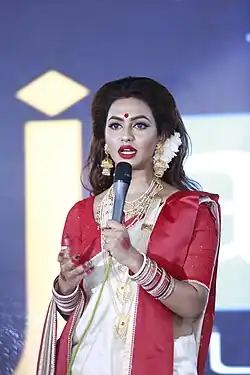 Nusrat Faria Mazhar (born as Faria Shetu; born 8 September 1993)[1][2] popularly known as Nusraat Faria is a Bangladeshi film actress, model, singer, television presenter and radio jockey who mostly works in Dhallywood and Tollywood films.[3]
