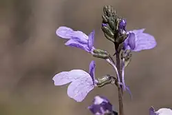 Nuttallanthus texanus, the Texas toadflax, is an annual to biennial plant in the family Plantaginaceae found across much of the western United States.[2]: 128 It can often be seen in patches along roadsides.[2]: 128 Its inflorescence is raceme.[3]