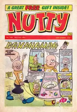 Nutty was a British comic magazine that ran for 292 issues from 16 February 1980 to 14 September 1985, when it merged with The Dandy. Published by D. C. Thomson & Co. Ltd, Nutty was an attempt to create a more lively and chaotic comic compared to many on sale at the time.